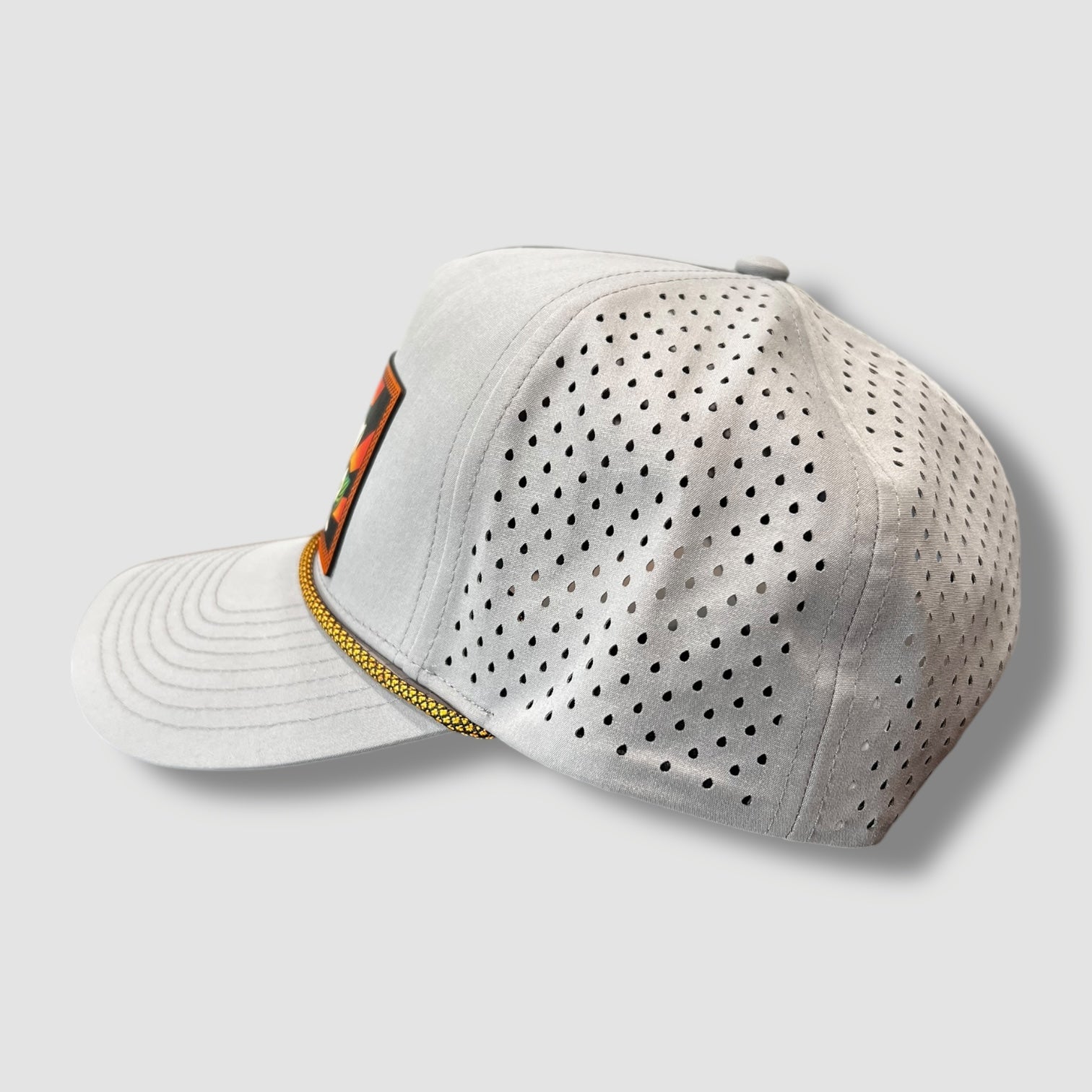 Nothing says Louisiana pride like a magnolia in full bloom. This light gray performance trucker hat pops with a bold magnolia patch set against fiery rays of orange and red. Finished with breathable perforated panels and a gold rope detail, it’s built for comfort and style whether you’re at a festival, tailgate, or Sunday stroll under the oaks.